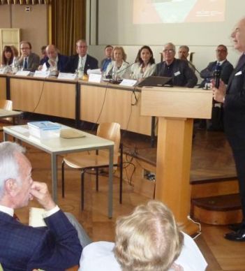 El Duque de Soria, acompañado en el Congreso de Münster por el presidente de la FDSCCH, Rafael Benjumea, y el secretario general de esta Fundación, José María Rodríguez-Ponga, concluyó su intervención ante la Asamblea deseando que el hispanismo “sirva cada vez más como eficaz instrumento para favorecer la convivencia entre culturas y, en definitiva, sirva para que las nuevas generaciones puedan afrontar con mayor esperanza el futuro”.