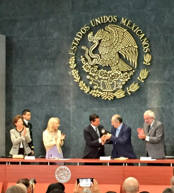 El día de hoy se entregó al poeta y académico, Eduardo Lizalde, el Premio Internacional Carlos Fuentes a la Creación Literaria en español. La ceremonia tuvo lugar en Los Pinos y la presidió el presidente Enrique Peña Nieto; también estuvieron en el presídium Silvia Lemus; la secretaria de Cultura, Cristina Cepeda; el rector de la UNAM, Enrique Graue; el director de la Academia Mexicana de la Lengua, Jaime Labastida, y Vicente Quirarte, secretario de la misma, además del presidente de la Comisión de Cultura y Cinematografía en la Cámara de Diputados, Santiago Taboada y el de la Comisión de Cultura en el Senado de la República, Gerardo Sánchez García.
